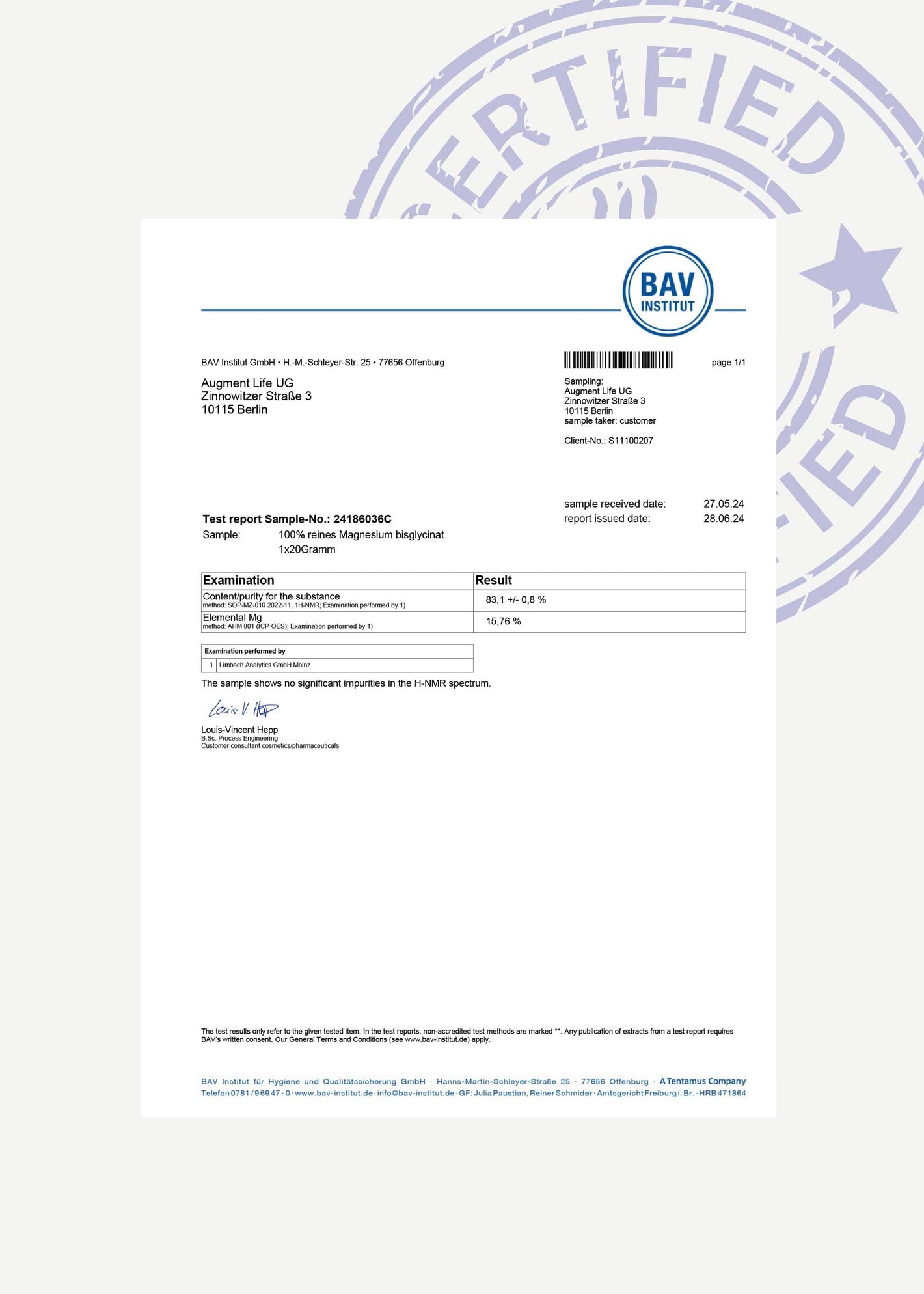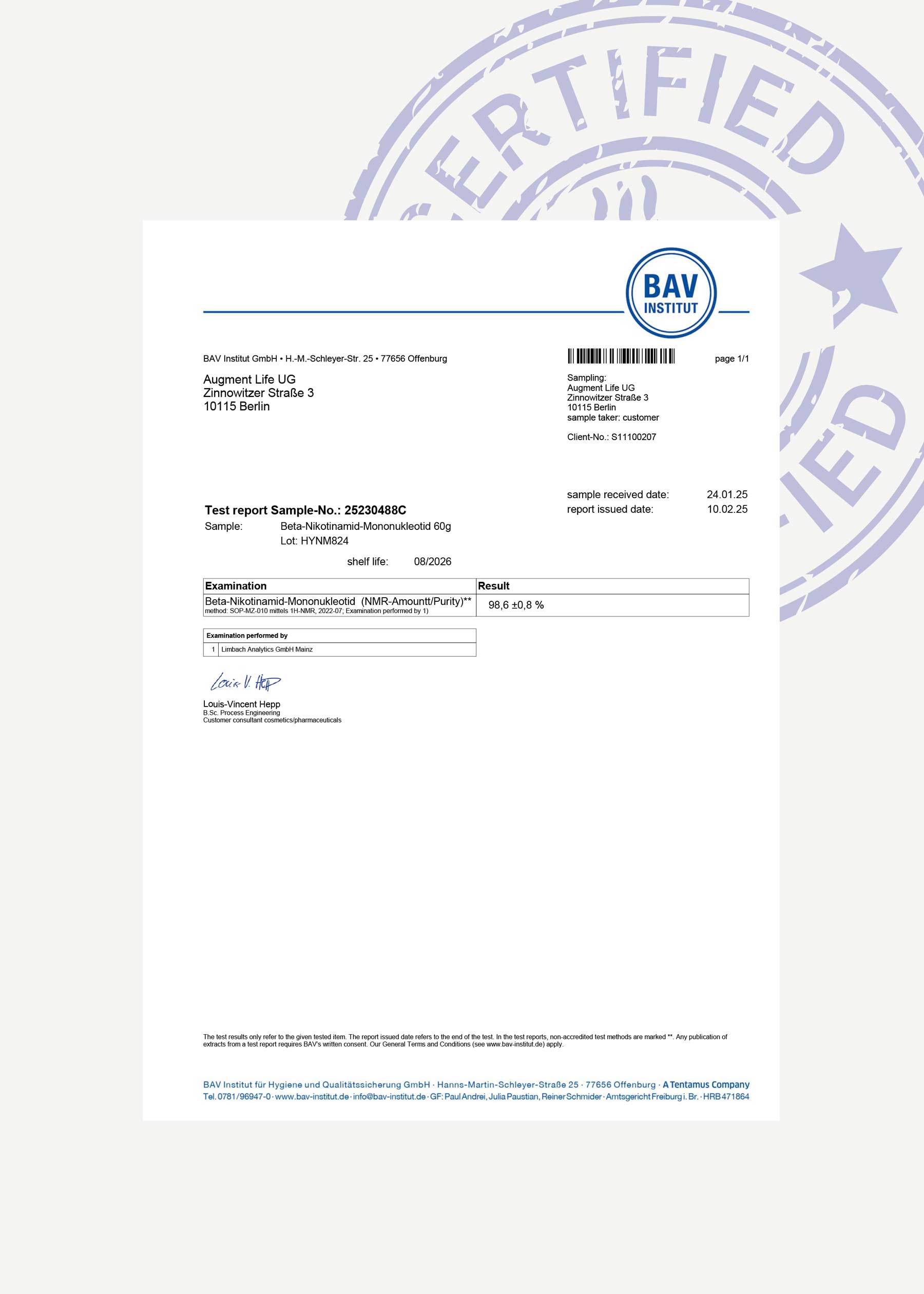 The BAV Institut tests every ingredient we use to confirm purity. Learn More