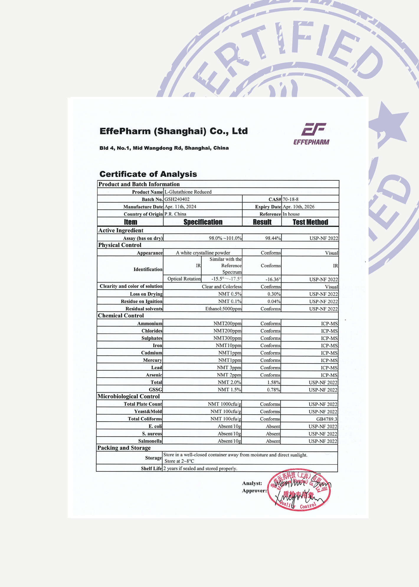 L-Glutathione is a powerful antioxidant naturally produced in our cells and is known for its essential role in cellular health and immune support. It consists of three important amino acids: glutamine, glycine, and cysteine.The levels of glutathione in our body can decrease because of stress, poor nutrition, and aging, which can impact immunity and energy levels. Taking glutathione supplements can decrease the levels of oxidative stress in your body, improve insulin sensitivity, improve liver health, and improve blood circulation if you suffer from peripheral artery disease. The recommended daily dose of glutathione is 250-500 mg, which is generally regarded as safe, with possible mild side effects like bloating or cramping.ย