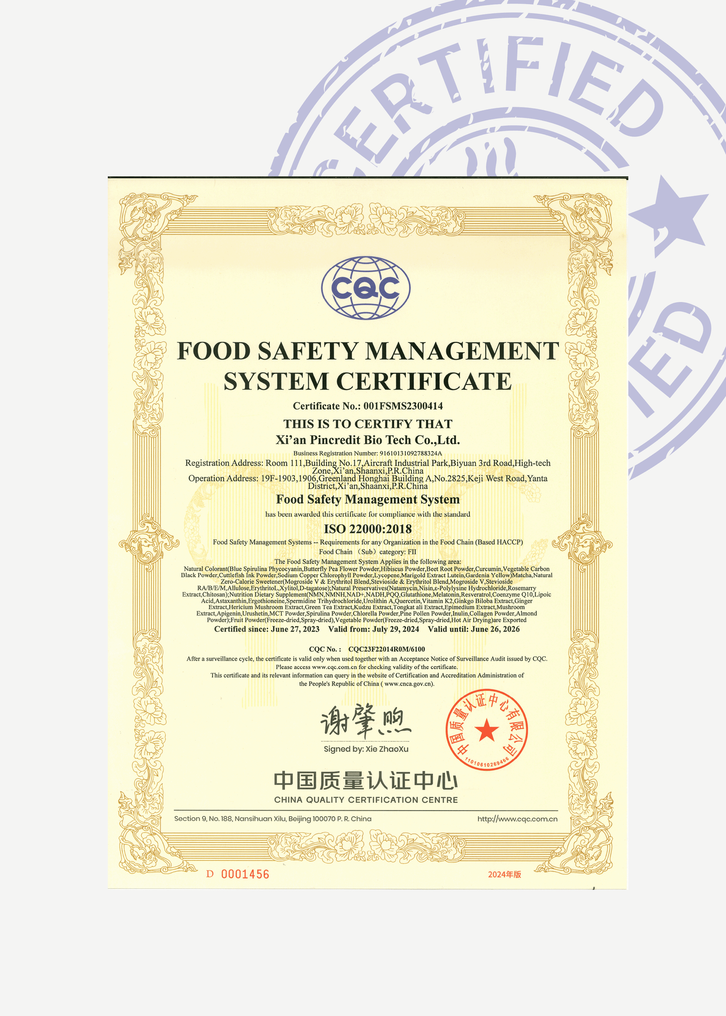 We meet the highest standards in the food supplement industry: ISO 9001 and ISO 2200 qualifications. Learn More