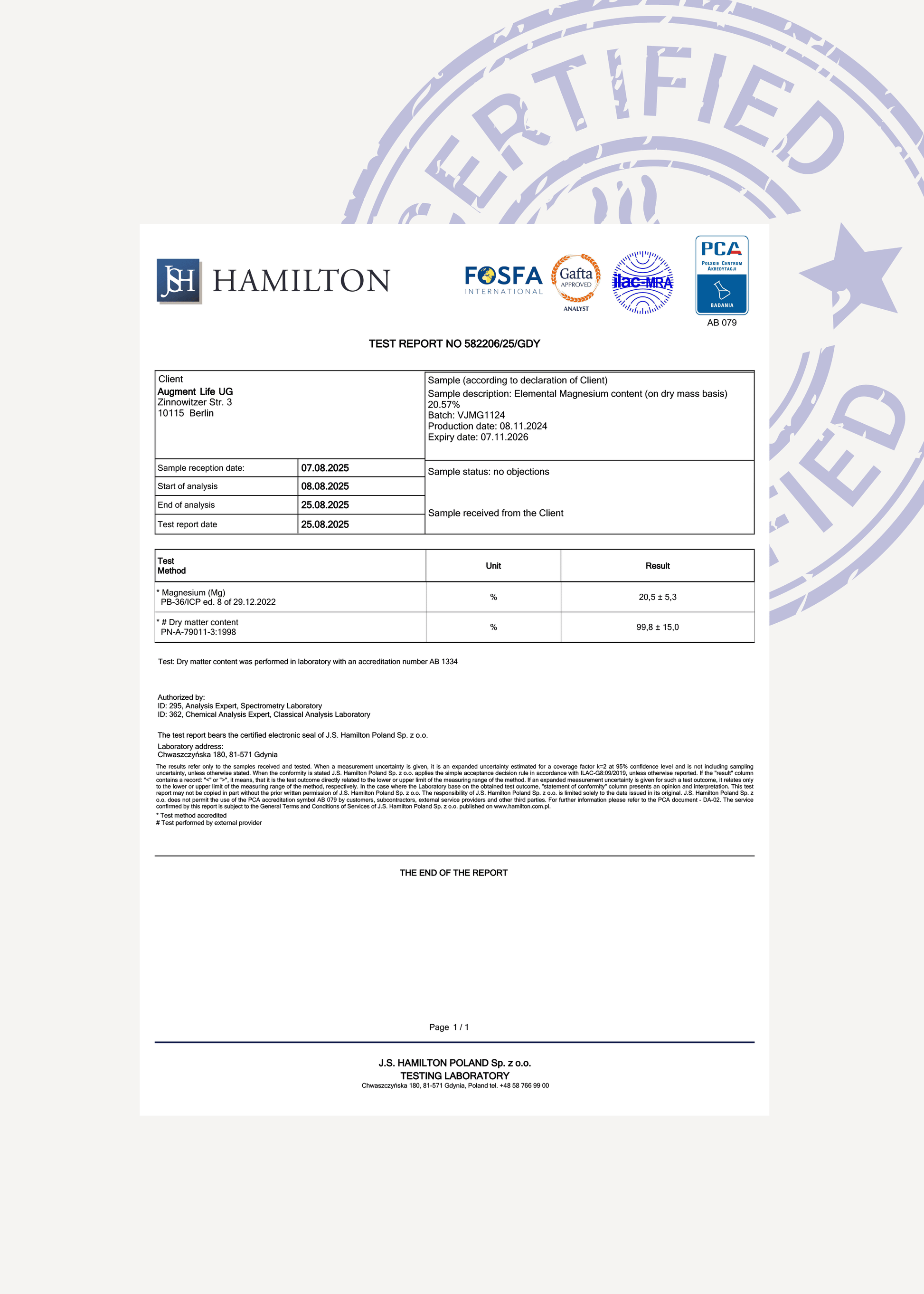 And to be sure no mistakes have been made, Augment Life sends all its supplements to third-party certified laboratories to verify the purity and quality is as expected.