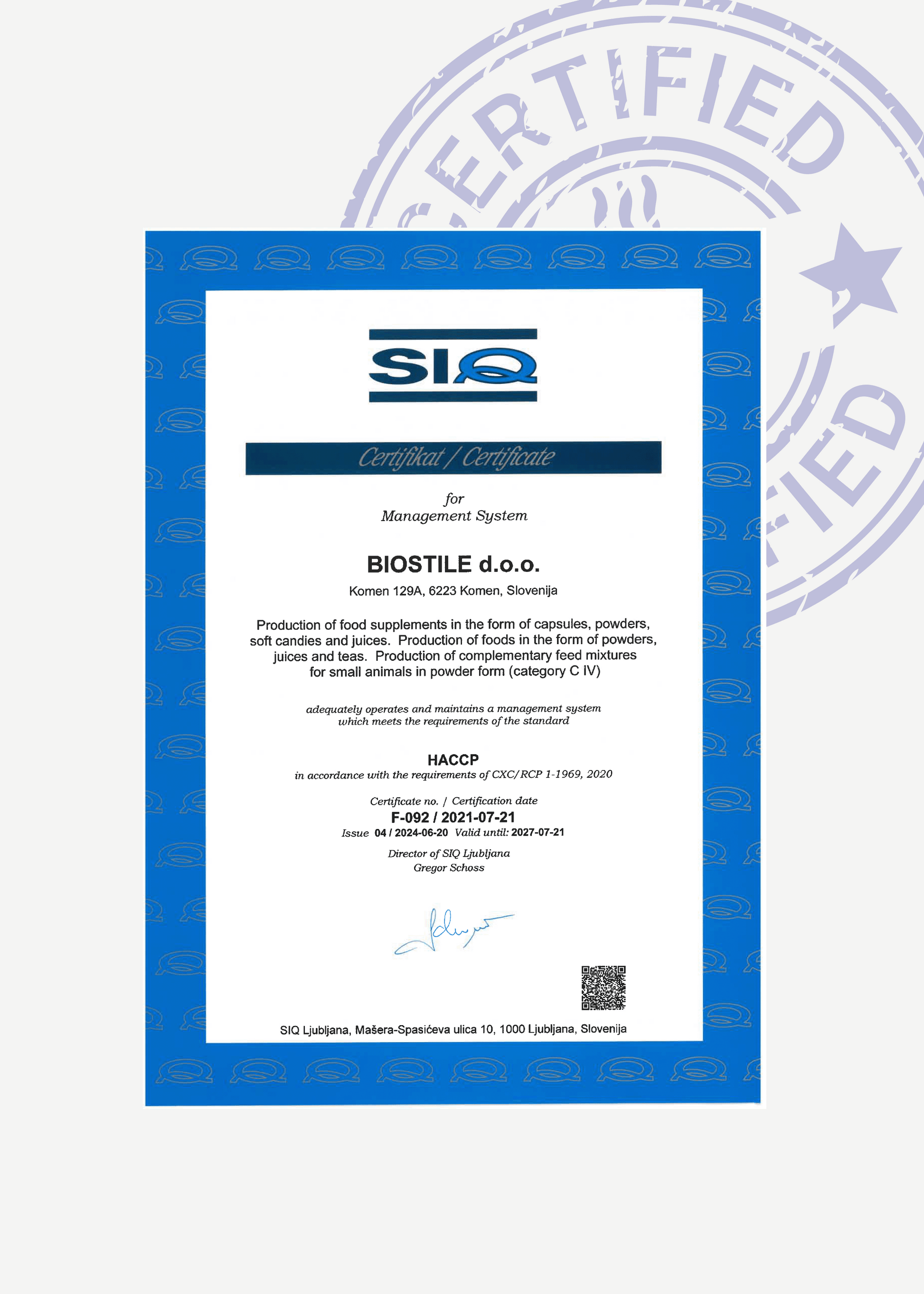 Our supplements are produced according to the highest standards in the food supplement industy. With ISO 9001 and ISO 2200 the world leading standards for process management, and precision are maintained to insure you receive the highest quality, purest materials possible.